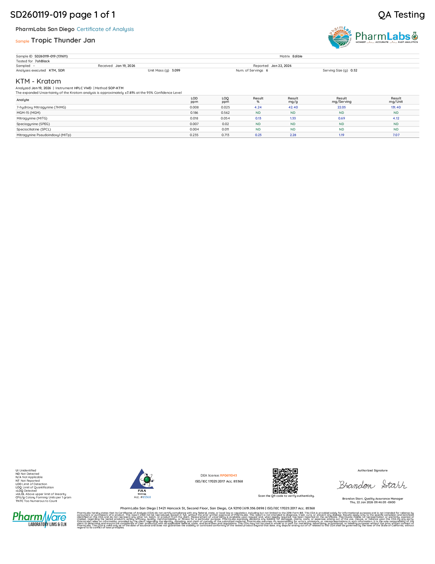 Mitragynine Pseudoindoxyl: 5.22% (1.19mg)